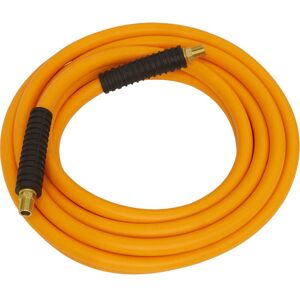 PVC and rubber blend offers more flexibility in temperatures as low as -40°C. High-visibility for added safety around the workplace. No memory recoil effect allows the airline to lay flat. Manufactured in accordance with EN ISO 5774. Features high grade TPR (Thermoplastic Rubber) inner tube and outer coating, offering lightweight, superior bend radius and durability. Fitted with 1/4"BSP male connectors. Silicone-free for use in bodyshops. Features & Benefits: • PVC and rubber blend offers more flexibility in temperatures as low as -40°C. • High-visibility for added safety around the workplace. • No memory recoil effect allows the airline to lay flat. • Manufactured in accordance with EN ISO 5774. • Features high grade TPR (Thermoplastic Rubber) inner tube and outer coating, offering lightweight, superior bend radius and durability. • Fitted with 1/4"BSP male connectors. • Silicone-free for use in bodyshops. • Model No. AHHC15 Specifications: Model No AHHC15 Bore: Ø8mm(5/16") Brand: Sealey Fittings: 1/4"BSP Unions Length: 15m Nett Weight: 2.6kg