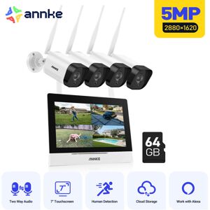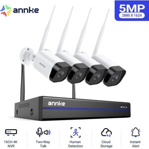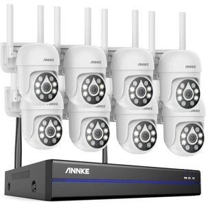 Key features: · 5MP video viewing, recording and playback · Wi-Fi access, real plug-and-play system · Advanced H.264+ Video Compression · Up to 16 channels, 8MP wireless IPC access · Two-way voice intercom, built-in microphone and speaker · Instant motion detection email alert · HDMI and VGA outputs for TV, monitor and computer · Simple-to-use app for mobile monitoring · True day and night continuous protection · Up to 100ft night vision with Smart IR · IP66 weatherproof indoor and outdoor cameras Description du produit 16CH 8MP Scalable NVR Up to 16 channels can meet your subsequent expansion of monitoring needs. Stable & Fast Dual-band WiFi Flexible choice of 2.4/5.8 GHz WiFi networks for stable performance. 5MP Super HD Whether preview, video recording or playback, you can see it clearly with details. Clearly Night Vision You can see up to 100ft even in low lights. Wide Monitoring Range Support auto-cascading and wireless relay, enhance connection distance and transmission