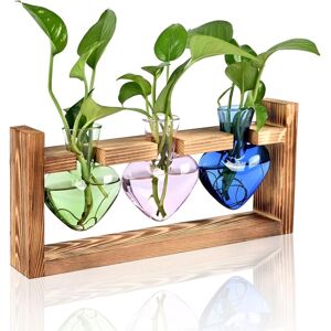 Our glass vases are colored by blending food-grade natural minerals. The color is naturally beautiful, transparent, and clear. Even with long-term use, it never fades. these are Heart shaped vase,The frame is crafted from sturdy and robust natural wood, while the colored heart bulb terrariums are constructed with high boron silicon heat-resistant glass. The wooden stand dimensions: 5.1"H x 10.9" W x 2.2" D; Each vase: 4.1"H x 3.1" W; Opening: 1.4 inch Diameter. These dimensions make it the perfect size for desks in offices or homes. Ideal for plant enthusiasts, this heart-shaped vase set makes for excellent gifts on occasions such as birthdays, Mother's Day, Christmas, Valentine’s Day, and Thanksgiving. These propagation jars are a thoughtful present for nature lovers and gardeners alike. While we have taken ample precautions in packaging, glass is a fragile material, and various unpredictable factors during transportation may lead to damage. If you receive a damaged product, please