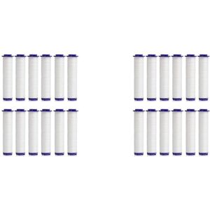 Replacement filter elements for filter shower head, The mineral stone of the Stone Flow filter shower can also be replaced with PP polypropylene cotton filter Absorb dirt, dust and other harmful substances in the, remove impurities in the shower and monitor the quality of the Easy to install, compatible with a variety of detachable shower heads, just twist the lower part of the body and put the cotton filter. If the shower is relatively short, you can also unplug the blue cover on the cotton filter elements and install it at the shower inlet. It is recommended to change it every 4 to 6 weeks depending on the quality of the Material: PP Color: White Package Contents: 24 x Filter Elements Only the above package content, other products are not included. Note: Light reflection and different displays may cause the color of the item in a little different from the real thing. The measurement allowed error is +/- 1-3 cm.