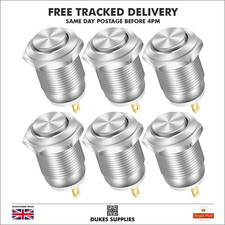 Description: This metal push button switch is suitable for mounting holes with a diameter of 12mm. Widely used: Ideal for horn button, PC power button, etc. Specifications: Item Name: Push Button Switch Operation Type: Momentary Head Shape: High Head Max Switch Rating: 2A/12V/24V/125V/250V AC Color: Silver Switch Combination: 1 NO Terminal Type: 2 Pins, Welding Material Material: Nickel Plated Brass + Stainless Steel Head Diameter: 14mm Mounting Hole Size: 12mm Protection Class: IP67, IK10 Package Includes: 5×12mm Push Button Switches