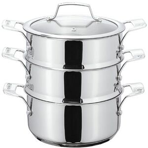 Stellar Premium 3 Tier Steamer Set has 4 interchangeable pieces in any configuration - 2 steaming tiers, base pan and a vented glass lid. This steamer is suitable for ALL hob types including induction and has efficient thermic bases for even heat distribution. Premium stainless steel with branded cast stainless steel handle and vented glass lids prevent from over boiling (H)24cm (W)17cm (L)25cm Dishwasher and oven safe 240 Stellar lifetime pan guarantee