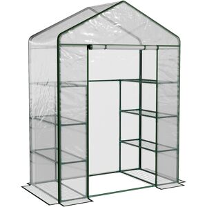 This Outsunny small plastic greenhouse with shelves is suitable for gardeners of all levels. With the UV-resistant plastic cover, roll-up door and three mesh windows, it is a safe shelter inside, allowing you to create a desirable temperature and humidity for total control. Four shelves on each side allow room for holding and organising pots and trays. OUTSUNNY Walk-in Greenhouse with 4 Shelves, Outdoor Small Greenhouse, White