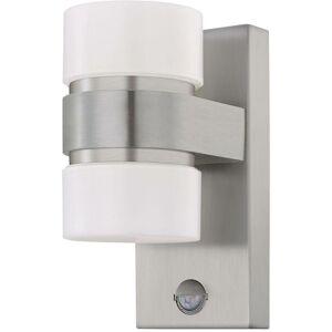 Atollari LED Outdoor Up Down Wall Light with PIR Motion Sensor Stainless Steel, Silver IP44 - EU Stock Finish: Stainless Steel Material: Cast Aluminium IP Rating: IP44 Height (cm): 23 Length (cm): 10 Projection (cm): 15.5 No. of Lights: 2 Lamp Type: LED Kelvin: 3000 Lumens: 1000 Wattage (max): 6 Weight (kg): 1.091