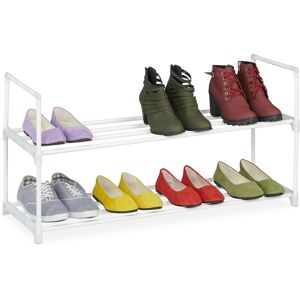 This shoe rack provides the perfect storage for your shoes in the hallway orcorridor. Each tier offers space for 4 pair of shoes. That way, you can keepall your shoes organised and to hand. The stable metal frame ensures stability.The modular plug-in system can be assembled quickly and easily without the useof tools, making it ideal for your next camping holiday. Decide for yourselfhow many tiers you want. Shoe rackdetails - Overall dimensions 2 levels H x W x D: approx. 45 x 90.5 x 30.5 cm/ 0.8 kg - Overall dimensions 3 levels H x W x D: approx. 67 x 90.5 x 30.5 cm/ 1.2 kg - Overall dimensions 4 levels H x W x D: approx. 91.5 x 90.5 x 30.5 cm/ 1.6 kg - Overall dimensions 5 levels H x W x D: approx. 114.5 x 90.5 x 30.5 cm/ 2.1 kg - Total dimensions 7 levels H x W x D: approx. 160.5 x 90.5 x 30.5 cm/ 3 kg - Material: Steel, plastic - Colour: Black Plug-in shoe organiser system - Dimensions per level W x D: approx. 86.5 x 26.5 cm - Distance between shelves: approx. 22 cm - Load capacity