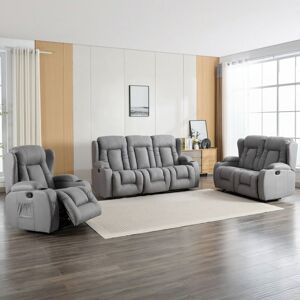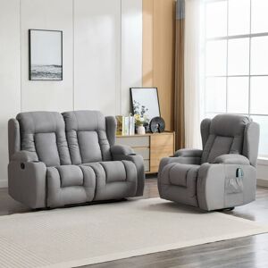 The Caesar Manual Recliner Sofa Set is the ultimate luxury statement. Part of our Premier sofa collection, this stunning, comfy sofa is covered in gorgeous Technology Fabric, a fabric with a leather like feel, and has deeply padded seats, armrests and a high back. With handy drinks holders at either end on all of the chairs, this reclining sofa is the perfect choice for family movie nights and enjoying some quality time together. Pull the latch on the side to recline the seats individually when you want a quick snooze. Delight in an 8-point vibrational massage on the 1 Seater to soothe away stress and any aching muscles. Enjoy the gently warming, heated backrest on a cold winter's day, whilst using the Rocking and 360 swivel function. Available with either an Electric or Manual Recline function, with optional drinks consoles. Dimensions: Height: 105cm; Width: 1 Seater: 95cm, 2 Seater: 150cm; Depth: 98cm; Seat Height: 49cm; Seat Width: 1 Seater: 55cm, 2 Seater: 116cm; Seat Depth: 54cm; Backrest Height: 67cm; Backrest Width: 1 Seater: 79cm, 2 Seater: 144cm; Recline Dimensions: 1 Seater: 95 163 81, 2 Seater: 150 167 81 More4Homes Caesar 1+2 Seater Grey Technology Fabric Modern Manual Recliner Sofa Set