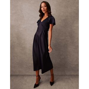 Slip straight into this party ready silky midi dress, with stunning bow open back detailing. Featuring a comfortable silky loose material. Style it with stiletto's for ultimate glam. Blue Vanilla Women's Luxe Angel Sleeve Midi Dress in Navy Size: 14