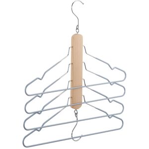 Are you running out of space in your wardrobe? Hanger after hanger and it's hard to see where each garment is? This Clothes Hanger helps you keep your wardrobe tidy and organised. The space-saving hanger has 2 moveable hooks for flexible use. Hang it horizontally or vertically to make the most of your wardrobe space. 4 hangers can be adjusted individually and remain in the selected position. Multiple hangers in detail - Overall dimensions for vertical use H x W x D: approx. 45 x 40 x 2 cm - Overall dimensions for horizontal use H x W x D: approx. 23 x 40 x 28 cm - Width of trouser bar: approx. 37 cm - Load capacity: approx. 8 kg - Weight: approx. 400 g - Material: Wood, metal, PVC - Colour: Natural, grey, silver - In a set of 2 Space-saving multi hanger for more organisation - 4 in 1 clothes hanger for tidiness in the wardrobe - For hanging jackets, T-shirts, blouses and much more - With bar and notches for trousers, tops etc. - Non-slip PVC coating for a secure hold - Space-saving