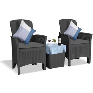 " Elevate your outdoor living experience with the Ophelia High Back Armchair Set – the ultimate blend of style, comfort and functionality. Perfect for any garden, terrace or balcony, this set includes two single armchairs and a convenient coffee table, offering a luxurious seating solution that maximises space while providing a relaxing retreat . Whether you're enjoying a morning coffee or entertaining guests, this outdoor lounge set creates the perfect atmosphere for every occasion. Designed for comfort and convenience, the Ophelia outdoor seating set features thick padded cushions and an ergonomically curved backrest , ensuring hours of relaxation. The high-back design provides additional support, making it ideal for long, leisurely afternoons outdoors. Additionally, the side table comes with a hidden compartment that is easily accessible by lifting the table top, providing a discreet storage space for your essentials, keeping everything within reach and neatly organised. Crafted