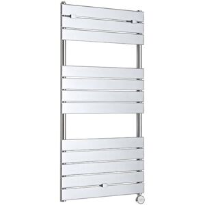 Enhance the feeling of warmth and comfort in your home with the Milano Lustro Electric flat bar heated towel rail. Boasting an attractive modern design the radiator is made from premium quality steel and accentuated by a contemporary chrome finish. The included 400W heating element ensures that your living space will be quickly and efficiently heated to create a cosy ambiance and features five heat settings and a dryer function. - Modern electric flat bar heated towel rail with chrome finish - Benefits from premium quality steel construction - 400W heating element with five settings and dryer function - ISO9001:2015 registered manufacturer - Supplied wall fixings and wall plugs for installation - This product is covered for 10 years - Dimensions: 1213mm x 450mm x 45mm Please note: The hard-wiring of the heating element should be carried out by a qualified electrician.