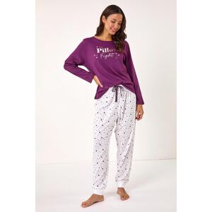 Pillow Fight Pyjama Set by Roman UK Get ready for a cosy night in with this adorable pillow fight PJ set The purple top paired with the ivory fulllength trousers is the epitome of comfort With a relaxed fit top and soft bottoms this set is perfect for those chilly AutumnWinter evenings Style with a robe and plush slippers for the ultimate relaxation experience at home Womens Regular fit True to size 100 Cotton Machine Washable Length Approx 74cm 100 Cotton