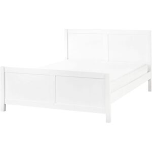 Industrial Metal Bed Frame. Refresh and update your bedroom style with this minimalist, double-size bed frame. Made of robust metal, this frame features a low, geometric headboard, adding an inventive industrial flair to the piece. Equipped for durability and stability, the bed structure is supported by seven metal legs to ensure maximal sturdiness. Healthy, peaceful sleeping is guaranteed thanks to the sprung slatted base, which allows an even distribution of body weight and free air circulation. Details: Product Type: Double Bed Style: Industrial General Color: White Material Type: Metal Main Material: Steel Additional Material: Plywood Fabric Upholstered Back: Yes Finish: Powder Coated Dimensions: Headrest Dimensions: 147x56 Width: 147 cm Length: 209 cm Height: 86 cm Sleeping Surface: 140x200 cm Weight: 21 kg Weight Capacity: 200 kg Offer Includes: 1 x Bed Frame, 1 x Slatted Frame (24 Sprung Slats), Not Included: Mattress, Bedding and Cushions Key Features: Suitable for All Types