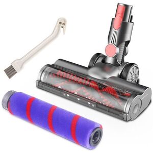 【Replacement Dyson Vacuum Cleaner Head, 2 Rollers + 1 Cleaning Brush】 Equipped with a powerful high-speed motor to improve cleaning performance and reduce noise, the barbs at the end of the cleaning brush can help clean the tangled hair on the turbine brush. [Compatible with multiple models, removable and washable] Perfectly compatible with Dyson V7 V8 V10 V11 V15. (Note: Not compatible with V6, DC, Slim series.) Simply press the side button to quickly attach and remove the rollers for cleaning and drying to reuse. 【High-quality material】 The machine is made of ABS plastic, the roller is made of nylon and carbon fiber, strong and durable, the "V" shaped turbine brush is suitable for cleaning carpets and tiles, the brush roller better protects scratches on the wooden floor and effectively removes stubborn stains. Rubber wheels provide smoother brush movement and lower noise. [LED design, 180°/90° flexible rotation] The front of the head is equipped with 3 LED lights to illuminate the