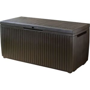 The durable resin construction of the Springwood Garden Storage Box provides it with full weather resistance as well as an attractive wood-like texture, making this a versatile storage solution. It has a capacity of 302 L, can support up to 250 kg/551 lbs on its lid to seat two adults, and has built-in handles and rollers. It’s also lockable and easy to assemble. Keter