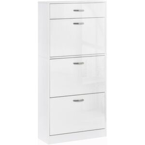 Choose this shoes cabinet from HOMCOM will keep your home tidy. There are three flip drawers, each can hold six pairs - perfect for use with the family or your flatmates. The inner shelf can be set to two different positions for storage which fits your shoes better. Finished with a handy top drawer, offering even more storage. The high gloss shoe storage unit in modern style is a great addition to your home. Specifications: ● Colour: White ● Material: Particleboard ● Overall Dimension: 62W x 24D x 135H cm ● Pull-out Drawer Size: 52.3W x 18.3D x 7H cm (Inner), 57.3W x 14H cm (Panel) ● Flip Drawer Size: 22.5W x 30.5D cm (Inner), 57.2W x 35.2H cm (Panel) ● Overall Weight Capacity: 15kg ● Item Label: 833-414V01Just so you know: this item ships and arrives in separate boxes. Delivery times may vary with each box. Box quantity: 2 Features: ● Holds maximum 18 pairs of shoes ● Clean modern style suitable for lots of different home and office spaces ● Particle board structure is suitable for