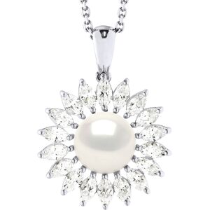 Necklace - Freshwater Pearl 8-9mm button - Pattern Sun - Knitwear convict - 925 Thousandth rhodium - Length: 42 cm - Delivered in a case with a certificate of authenticity and an international guarantee - All our jewels are made in France.