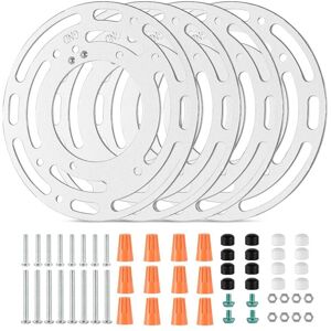 High -quality: 4 pieces of round universal lights are made of high -quality Metal to solid, , rust -proof, your safe use and reliability, and extend the service life.This heavy bracket rated support up to 22 pounds (10 kg) Widely used: This upgraded version of the light installation bracket adapter is designed to connect the lamps and the canopy to the electrical wiring box.4 inches diameter (about 10.2 cm) round lamps installation bracket boards are suitable for wall lamps, bathroom dressing table lamps, near ceiling lamps, dark installation lights, LED lights, chandeliers and branches, etc. Easy to use: 4 sets of complete lamp installation brackets, including 4 -inch diameter lamps installation of horizontal rods, equipped with standard installation holes, rubber hats, wiring nuts, installation screws, ground screws and nuts, you can easily use it to install the lamps., No need to buy other installation hardware You receive: 4 x lamps installation of horizontal rod; 8 x Balck rubber