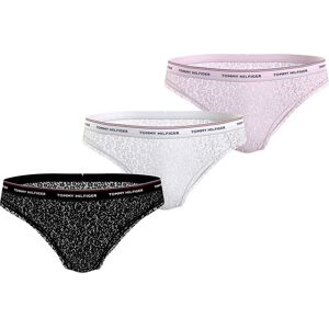 Pack of 3 bikini bottoms in cotton, in three colors:maroon, gray and black.White waistband with tommy hilfiger letters in black all around.Composition:74% Transitional Cotton / In-Conversion, 21% Recycled Cotton, 5% Recycled Elastane.