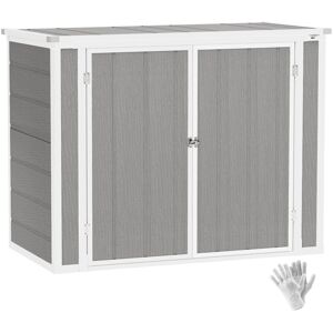 Maximise your outdoor space with the Outsunny Bin Storage Shed, designed to neatly store two 240L rubbish bins, tools and more. Effortlessly dispose of waste with the pneumatic lifting lid and chain hook, while the lockable double doors keep your items secure. Built with a weatherproof polypropylene shell, this small shed offers both convenience and protection for your garden essentials! Specifications: ● Colour: Light Grey ● Material: Polypropylene, Aluminium ● Overall Dimension: 143W x 75.5D x 110/108.5Hcm ● Inner Size: 130W x 61.5Dcm ● Lid Size: 143W x 75.5Dcm ● Maximum Opening Height: 167cm ● Door Size: 109W x 100.5Hcm ● Bottom Size: 138W x 70.5Dcm, 0.97㎡ ● Suggested Single Bin Size: Max. 240L ● Snow Load Capacity: 40kg/㎡ ● Item Label: 84H-205V00LG Features: ● Neatly stores two 240L bins, gardening tools and more ● Pneumatic lifting lid for easy opening and closing ● Chain hook links to bin lid for effortless disposal ● Doors feature latches for secure locking ● Constructed from