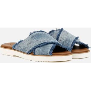 Step into effortless style with these denim cross-strap flat sandals. Featuring fray detailing straps and ultra-comfy custom CloudBound™ foam insoles for all-day cushioning and support. Finished with a lightweight EVA outsole and sawtooth detailing for added grip and style.