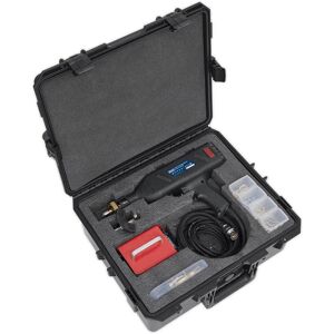 Sealey Stud Welding Kit Features: Professional quality stud welder for fast, efficient body repairs. Removes dents quickly, without holes or the need to remove interior trim. No burn through means that removal of studs and washers is easy and preparation work before repainting is minimized. Suitable for use on steel or aluminium and can weld studs, washers and tabs. Patented quick puller attachment allows removal of smaller dents without the need for studs or washers. Supplied in heavy-duty storage case. Technical Details: • Supply: 230V-13A (13A Plug fitted). • Professional quality stud welder for fast, efficient body repairs. • Removes dents quickly, without holes or the need to remove interior trim. • No burn through means that removal of studs and washers is easy and preparation work before repainting is minimized. • Suitable for use on steel or aluminium and can weld studs, washers and tabs. • Patented quick puller attachment allows removal of smaller dents without the need for