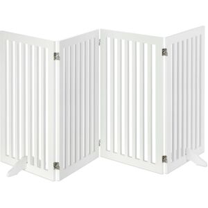Stairs and doors alike can potentially be a tremendous danger for pets and children. Thus, you should set up adequate protection with this adjustable safety barrier. It can be flexibly positioned in passages, by the oven or fireplace. 2 Feet ensure the necessary stability. You can easily set the 70 cm tall gate up and fold it up for compact storage as well when needed. Please note: Please pay attention to the bar interval when using the barrier. Dog Fence Details - Total height: app. 70 cm - Per panel H x W x D: app. 70 x 51 x 2 cm - Bar interval H x W: 60 x 3.7 cm - Material: MDF - Colour: White 3-Piece Safety Gate - Max. width: app. 154 cm - Folded size H x W x D: app. 70 x 51 x 6 cm - Weight: app. 8.4 kg 4-Piece Safety Gate - Max. width: app. 206.5 cm - Folded size H x W x D: app. 70 x 51 x 8 cm - Weight: app. 10.9 kg Versatile Indoor Divider - Can be used for kids and dogs - For doors, stairs, fireplace and oven - Hinges for flexible hinges - Floor protectors prevent scratches