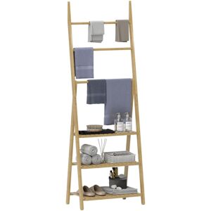 Step up your 'A' storage game, whilst keeping your bathroom tidy with this HOMCOM shelf. This bamboo bathroom storage piece is natural and suitable in moisture-filled places. It's crafted into an 'A' shape to promote balance. Showcasing three slatted shelves and three towel bars - providing plenty of space for keeping all essentials within easy reach. Specifications: ● Colour: Natural Finish ● Material: Bamboo ● Overall Dimension: 53.5W x 30D x 153Hcm ● Shelf Size: (Bottom to Top) 47W x 30D x 23Hcm, 47W x 23D x 23Hcm, 47W x 16Dcm ● Bar Size: Φ1.8 x 50Lcm ● Bottom to Floor Height: 6.5cm ● Weight Capacity: 18kg (total), 5kg (shelf), 1kg (towel bar) ● Item Label: 834-728V00ND Features: ● Folding design. Bathroom storage unit is easy to store when needed ● Three shelves and three towel bars. Plenty of storage ● 'A' shape for balance ● Strong and tough bamboo structure, with a smooth and protective varnished finish ● Slatted shelves for liquid drainage. Off-the-ground base for easier