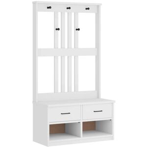 Create a warm and welcoming atmosphere right at your doorstep with this stylish hall tree! Durable material: Solid pinewood is known for its strength and durability. Its straight grains and distinctive knots contribute to its rustic charm. Engineered wood is a durable and stable material with a smooth surface that is resistant to moisture, warping, and splitting, making it a reliable choice for a variety of projects. Walnut wood look: The hall tree bench, crafted from solid pinewood with a walnut wood finish, adds timeless warmth and sophistication to your space. Its elegant design not only enhances your decor but also offers durability and practicality for everyday use. Ample storage space: This hallway storage unit provides ample space to store your clothes, books, shoes, or your personal belongings. It's perfect for keeping your hallway or entrance tidy and free from clutter, making your living areas more inviting. Practical hooks: The hall cabinet is equipped with 5 hooks for
