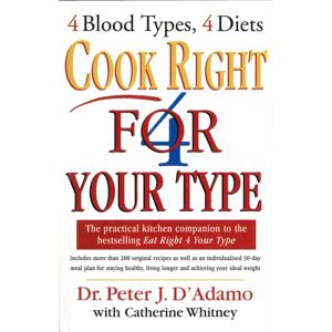 From the doctor whose expertise brought us the bestselling Eat Right 4 Your Type - the ground-breaking lifestyle diet book on the connection between blood type and diet - comes the nutritional companion for living healthily and losing weight.Eat Right 4 Your Type convinced thousands of readers around the world that eating right for one's blood type can help anybody live a longer, healthier life.Cook Right 4 Your Type shows how to set up a nutritional programme designed specifically for each blood type.With the help of a team of chefs, Dr D'Adamo presents a book full of vital information and delicious recipes.Whether you're a meat eater or a vegetarian, Cook Right 4 Your Type is an essential source for living with a sensible diet individualised for you that allows you to eat food that seems like a great indulgence while still losing weight.With recipe possibilities from lamb stew to apple pie, and braised vegetables to delicious soups, you'll barely notice that you've started a regimen designed to optimise your health, your weight and your total wellbeing.