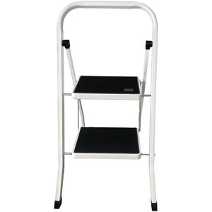 2? Step Ladder Anti-Slip Tread Steel Folding Iron Ladder Safety Frame DIY Specification: Made from ultra sturdy and durable iron, this ladder features wide steps and rubber mats to prevent slipping, and is a must for any household. This ladder also folds down for easy storage. Furthermore, this ladder is perfect in aiding cleaning when trying to reach the hard to get places and ideal when doing painting and decorating and any other DIY jobs. 2 Step Folding Stool *Material:Steel *No of step:2 steps *Open size:500x490x430mm *Close size:500x40x550mm *Step Size:30×20cm *Tube Size:30×20×0.9mm *N.W.: 3.3 kg *Max Loading: 150Kg