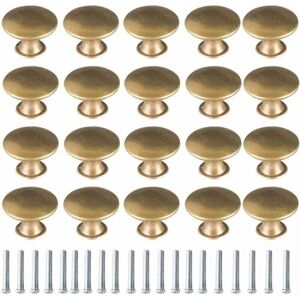 Handle Type: Knob Iron, Brass Handle Material: Brass Package Contents: 20 brass door handles with 20 screws. Size: 30 x 21 mm. Material: Made of iron alloy, yellow bronze color. Design: Small appearance, smooth surface, simple and retro mushroom shape, easy to grip. Versatile Use: Suitable for shoe cabinets, bookshelves, drawers, cupboards, sideboards, doors, dressing tables, etc.