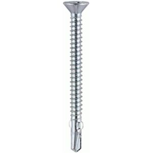 Timco's light section self-drilling screws are designed for light section 5mm steel, with a coarse self-tapping thread. They are plated with Silver Ruspert which is a reliable coating able to withstand over 1000 hours of salt spray testing. Specifically designed and manufactured to meet all the recognised industry standards and performance criteria. Hex head with a self-drilling tip Silver Ruspert plated for a durable corrosion resistant coating which can withstand over 1000 hours of salt-spray testing Designed for light sectional work Self-drilling screws for light section 5mm steel, with a coarse self-tapping thread. Size - 5.5 x 100mm (No washer) Quantity - 100