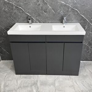 Double Basin Sink Vanity Unit 1200mm Handleless Obsidian Dark Graphite x2 600mm obsidian floorstanding vanity units in a matt deep graphite finish Contemporary square styling Fully rigid built (no assembly required) Soft close doors With internal shelves for creating extra bathroom storage space Handle-less modern design Furniture made in the UK With high quality ceramic double basin Sizes of vanity unit & basin only approx: W: 1200mm x D: 470mm x H: 885mm A pair of Freya basin mixer taps (as shown) can be added at extra cost Ceramic disc quarter turn technology Luxury modern square style Basin mono mixer tap Square style lever Chrome plated Manufactured from solid brass Complete with washers & nuts Deck mounted for use on one tap hole basins High quality Brand new & fully boxed