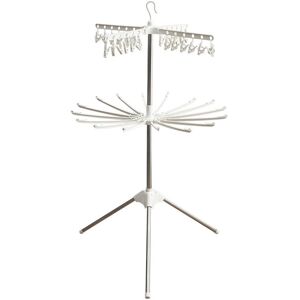 4-Tier Clothes Drying Rack: Can hang laundry weighing about 20 kg (about 48 towels and 24 pairs of socks). The drying part can be rotated for easy drying and loading. 3-Leg Construction for Superior Stability: Even if you hang a lot of laundry, the 3 legs will support it, so you can rest assured that it won't wobble. Adjustable Height: The height of the clothes drying rack can be adjusted according to the height of your clothes. Will not interfere with each other when drying Detachable Clip Hangers: The top layer clip hanger (with 24 clips) is detachable so you can take it off and hang it directly on the pole to dry, the bottom three layers of hangers come with 48 clothes racks (foldable), each one layer can hang 16 clothes or pants.