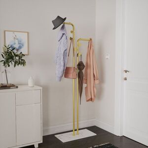Features: Unique floor clothes stand with white and gold combination, appeals a timeless sleek look and adds a touch of glamour and grace to the bedroom and entryway, while also serves its purpose to keep your coats and hats neatly organized, ensures no mess. Specifications: Style: Contemporary Features: Easy Installation, Portable Mounting: Free Standing Type: Coat & Hat Racks Installation Required: YES Material: Metal Iron + Granite Stone Color: Gold & white Net Weight: 8.9kg/ 19.62 lbs Weight Capacity: Each Hook 5kg/ 11 lbs Hanger 10kg/ 22 lbs Product Dimension: L * W * H total 60x30x176cm/ 23.62x11.81x69.29 inch Package Included: 1 x Floor Standing Coat Stand 1 x Instruction Guide Note- - Please refer to the measurement. Tiny measuring error is allowable in normal range. - There might be a little color difference due to the monitor, camera or other factors, please refer to the physical item.