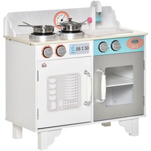 Bring joy and creativity to playtime with this beautifully crafted HOMCOM toy kitchen. Featuring a microwave, ice maker, sink and stove, it recreates real cooking scenes for immersive roleplay. Hooks, cabinets and shelves offer handy storage, keeping utensils neat and accessible. Made with robust materials, smooth edges and a stable frame, it offers secure, lasting fun. More than a toy, it inspires imagination and makes a delightful gift children will love. HOMCOM Kids Kitchen Playset with Accessories Large Simulation Kitchen Cooking in White