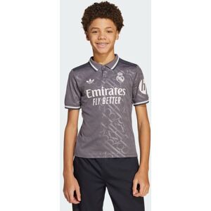 Elegance is their identity. The embossed "RMCF" monograms repeating across this juniors' Real Madrid third jersey borrow their distinctive look from the lettering used on traditional Madrid street signs. Standing out from the classy design, the iconic Trefoil returns to an adidas match shirt after a long break. Behind it all, AEROREADY keeps football fans dry and comfortable as they shout their support.This product is made with 100% recycled materials. By reusing materials that have already been created, adidas help to reduce waste and our reliance on finite resources and reduce the footprint of the products adidas make. - Regular fit - One-button polo collar - 100% polyester (recycled) - AEROREADY - Side mesh inserts - Real Madrid embroidered crest Shipped by adidas