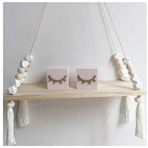 Pine tassel hanging floating shelf Wooden board: length: 38cm, width: 14cm, thickness: 1cm Length of the tassel: 15cm String length: about 55cm Item weight: about 0.68lbs Support weight: 22lbs< /li> Package includes: 1PCS x Pompom Pine Wood Hanging Floating Shelf 1PCS x Wooden Hook (so you can use this hanging shelf right away) Package not include any accessory shown on shelf in image. Perfect for decorating your kitchen, dining room, living room, bedroom, apartment, dorm room, kids room or office , etc Premium Material: The wall hanging rope shelf is made of natural New Zealand pine wood. Finished with a natural texture, smooth and non-scarred surface, with pine frankincense, adding a natural and comfortable feeling Unique design: matched with a tassel and colorful beads, perfect for displaying a photo frame, collectibles, books and your favorite items. Ideal for decorating your kitchen, dining room, living room, bedroom, apartment, dorm, office, etc. Installation: The hanging shelf