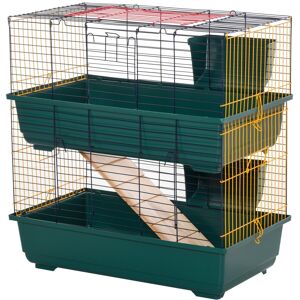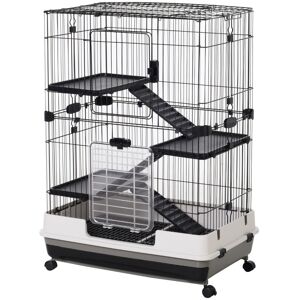 Watch pets thrive in this PawHut cage – a wonderful home for small animals. A colourful safe haven, it's made with a cosy living area, protected by metal wire caging, keeping them safely inside and allowing air to flow through. Inside features a small platform with a food bowl, a water bottle, a ramp and a hay feeder, providing everything they need. Plus, there's a deep base, which collects dirt and debris, keeping their space clean and comfortable. Give your pets the home they truly deserve. Specifications: ● Colour: Black ● Material: Metal and PP ● Dimensions: 53H x 99L x 52Wcm ● Front door: 25H x 29Wcm ● Plastic tray: 17H x 99L x 52Wcm ● Platform: 49L x 25Wcm ● Ramp: 37.5L x 12Wcm ● Hay feeder: 13H x 24L x 7Wcm ● Water bottle: 5.5H x Ф11cm ● Net weight: 6.5kg ● Item Label: D51-157V02BK Features: ● Suitable for small rabbits, minks, chinchillas, guinea pigs and other small pets ● Large front door for easy access, cleaning and maintenance ● Deep base to contain litter and other