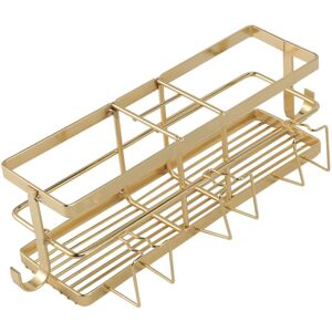Easy to install: Peel off the protective film on the adhesive, then stick it securely to the wall. Please install the hook on a flat and smooth surface, such as flat tile, glass, metal panel, marble wall, etc., or it may fall off easily. Perfect for holding facial cleanser, lotion, liquid soap, etc. Maximize unused wall space in your bathroom, saving space. The basket design makes it easy to drain and keep dry. Color: Gold Material: Metal Size: 28x11x8.6cm Package Contents: 1 * Storage Rack Only the above package content, other products are not included. Note: Light shooting and different displays may cause the color of the item in the picture a little different from the real thing. The measurement allowed error is +/- 1-3 cm.