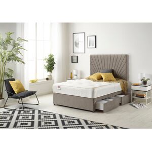 This Divan Bed Set with Sprung Memory Foam Mattress and upholstered Headboard will make a statement within your room. This environmentally friendly luxury bed set is made using timber sourced from renewable and managed forests. The upholstered headboard is visually stunning, finished in a matching Tweed Fabric with sectioned panels representing the rays of a rising sun. The soft cushioned panels make it ideal for sitting up in bed. Choose from a range of colours and variations, No Draw Beds, Storage Beds with 2 Drawers or 4 Drawers, as well as an option for a 1 Draw Foot end Bed. Drawers will arrive fitted, operating on ball bearing glides ready to use. Memory Foam Mattress: Sprung memory foam mattress has a medium feel and is approximately 24cm in depth. The mattress gives support to your body while ensuring air circulation to regulate temperature and provide comfort to give you a blissful nights’ sleep. The added layers of luxury fillings ensure the mattress has a supported yet comfortable feel; these fillings are also extremely breathable and will help to regulate temperature. Hypoallergenic mattress, preventing dust-mites and creating an allergen free sleeping environment. Finished in a soft touch knitted fabric and expertly hand tufted to create a more desirable sleeping surface that contours to your body while also adding a luxurious look & feel to your mattress. Manufactured in the UK, meeting and exceeding all British standards of quality and safety. Fire retardant mattress. 2FT6 and 3FT divan bases arrive as 1 piece, 4FT and above arrive as 2 pieces, connected using the U clips provided. Mattress will arrive flat packed. Fairmont Park Colour: Charcoal, Size: Small Double (4'), Storage Type: 4 Drawers