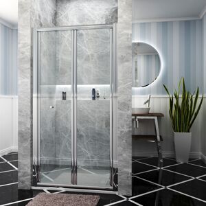 700mm Bifold Shower Door Product Specification: Size: 700x1850mm Inwards opening,space saving Tempered safety glass,BS EN 12150 certified High quality black polished aluminium frame 40mm wall adjustment,length can be adjusted from 860-900mm Metal rollers for smooth sliding,long lasting and and anti-rust Passed multi water proof test,waterproof guaranteed Extra wide Aluminium rail frame creates a steady structure A dedicated profile connected to wall profile,to create a stronger structure Black finished stainless steel knob handle Universal design Including waterproof seal Easy to install,including full installation instruction and all fixings Please note: Shower tray is not included Dimension