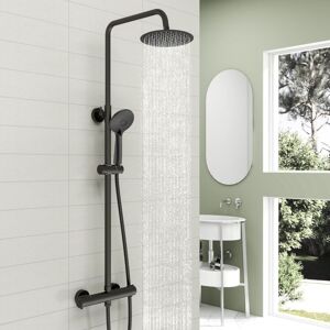 Sky Bathroom - Round Thermostatic Exposed Shower Mixer Twin Head Set Black