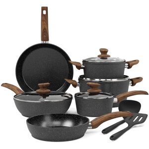 Induction Kitchen Cookware Set 12 Piece - Include 20cm fry pan/ 28cm fry pan / 24cm Deep Fry Pan with lid / 1.5Q saucepan with lid / 3Q casserole with lid / 5Q casserole with lid / 2 pcs silicone utensils. Easy Clean & hand wash recommend! Belfry Kitchen
