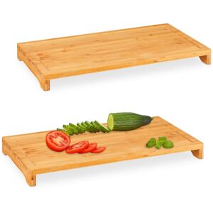 Breakfast board in the morning, chopping board at lunchtime, and serving board in the evening – this high-quality set of three bamboo chopping boards is not only versatile but also durable and easy to care for. Simply wipe with a damp cloth to clean the kitchen boards after cutting bread, vegetables, or meat. The wooden boards can be safely carried or hung using the handle holes. The bamboo boards are also functional and decorative as coasters. Chopping boards in detail - Large board H x W x D: approx. 1.5 x 33 x 22 cm - Medium board H x W x D: approx. 1.5 x 28 x 22 cm - Small board H x W x D: approx. 1.5 x 22 x 15 cm - Material: bamboo - Colour: natural Versatile bamboo kitchen tools - Ideal for cutting meat, fruit, vegetables, and more. - Made from natural and hygienic bamboo - With holes for safe carrying or hanging - Easy to clean with a damp cloth - Perfect for cutting, serving, or as a coaster Delivery includes - 3x chopping boards - Decorative items are not included in the