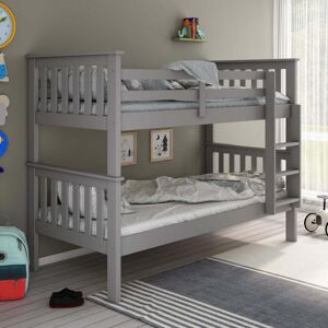 The Atlantis Grey Wooden Bunk Bed is a highly contemporary design crafted from quality pine wood, forming a comfortable sleeping space perfect for multiple children. With a space-maximising vertical structure, safety features and a highly modern finish, the Atlantis Grey Wooden Bunk Bed is sure to look amazing in any home.. . . . . . . Contemporary Design . The Atlantis Grey Wooden Bunk Bed boasts a warm contemporary grey finish for a highly modern exterior, flexible to all bedroom interiors and colour schemes. The vertical slats create a beautiful structure which adds simple elegance to any bedroom whilst a vertical structure maximises floor space and promotes a more spacious bedroom to ensure you’re never short of room, making the Atlantis Grey Wooden Bunk Bed ideal for children’s bedrooms.. . . . . . . . . Child-Friendly. Crafted from a solid pine wood, the Atlantis Grey Wooden Bunk Bed is sure to stand the test of time against damage and wear-and-tear making it perfect for children’s bedrooms. Suitable for multiple sleepers, the Atlantis Grey Wooden Bunk Bed boasts a solid slatted base to each 3ft single bed frame for maximum comfort and a prolonged mattress life. The structure is designed with child safety as priority with bordered edges for a secure night’s sleep.. . . . . . . . . A Personal Touch. The Atlantis Grey Wooden Bunk Bed is made up of two 3ft single beds which can be split to suit your own personal needs, making a very convenient build. The access ladder can be moved to either side for a customised construction to remain flexible to all bedroom shapes and structures. Every Atlantis Grey Wooden Bunk Bed is delivered flat-packed and prepared for an easy self-assembly with full instructions included in purchase.. . . .