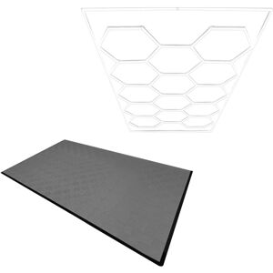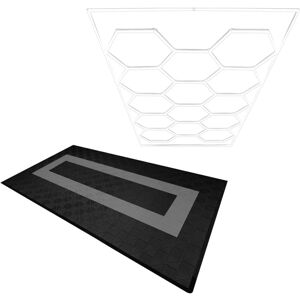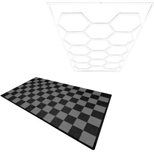 Transform your garage, workshop, or gym into a practical and visually stunning space with our premium vented garage floor tiles and innovative hexagon LED lighting bundle. This all-in-one solution combines strength, style, and functionality for a space you'll love to work in or show off. The vented garage floor tiles are expertly crafted from 100% polypropylene, offering a remarkable 5-tonne weight capacity per tile. This makes them ideal for supporting heavy vehicles, machinery, and equipment, ensuring long-lasting durability even in tough environments. The weather-resistant material stands up to temperature changes and challenging conditions, providing dependable performance for years to come. This pack includes 225 interlocking black tiles and 60 edge pieces, covering an impressive 36 square meters in a simple 15 x 15 configuration. Installation is effortless thanks to a smart interlocking system, while specially designed edges and corners provide smooth, safe transitions. The