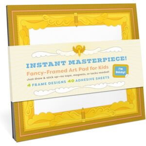 Ta-dah! … It’s your very own art gallery! Showcase your creativity with this fancy-pants art pad.Each page comes with a snazzy gold frame printed right on it—plus, they’re sticky!Just draw or color your masterpiece, peel the sheet off, and stick it on the wall. (Beret not included.)Voilà, it’s an instant art display for kids artwork— right under your roof!Who knew giant sticky notes could be so chic & museum-worthy?10 x 8 inches; 40 adhesive sheets; 10 each of 4 frame designs