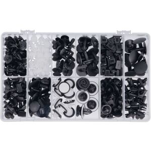 A mixed set of 12 types of trim clips including button and panel trim clips, locking nuts, metal fasteners, push and screw rivets - original manufacturer replacement trim clips - to suit Ford Fiesta. Popular trim clips to suit Ford Focus. Kit contains - Trim locking nuts, push clips, panel clips, screw rivets, metal fixing. Assortment contains 12 different clips. Full range of replacement packs available. Box contains 231pc