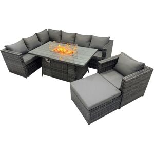 Elevate your outdoor living with this premium PE rattan sofa set. Crafted with weather-resistant wicker PE and reinforced galvanized steel, it combines elegance with unmatched durability—perfect for year-round use in your garden or patio. Set dimensions: •2 x Reclining chairs Size: 74W x 69D x 79H cm •1 x 3 seater Sofa Size: 177W x 67D x 79H cm •1 x rising dining table: 140L x 80W x 68/48H cm (height up 68,down 48) •1 x Side Table Size: 65L x 65W x 66H cm •2 x Small fully assembled footstools :40L x 40W x 34H cm •2 x Big Footstool :65L x 65W x 34H cm Dark Grey Mixed rattan with dark grey fabric .Color may vary due to light or monitor .we are unable to return the item due to this problem .Please contact us before purchase if you have requirements on color saturation . The 2 armchairs are adjustable, you can adjust the inclination of the chair back from 90°-130° through the button .> Table Can Be Used Both For Coffee Or Dining Table,Great Price Compared With Other Online Or Offline